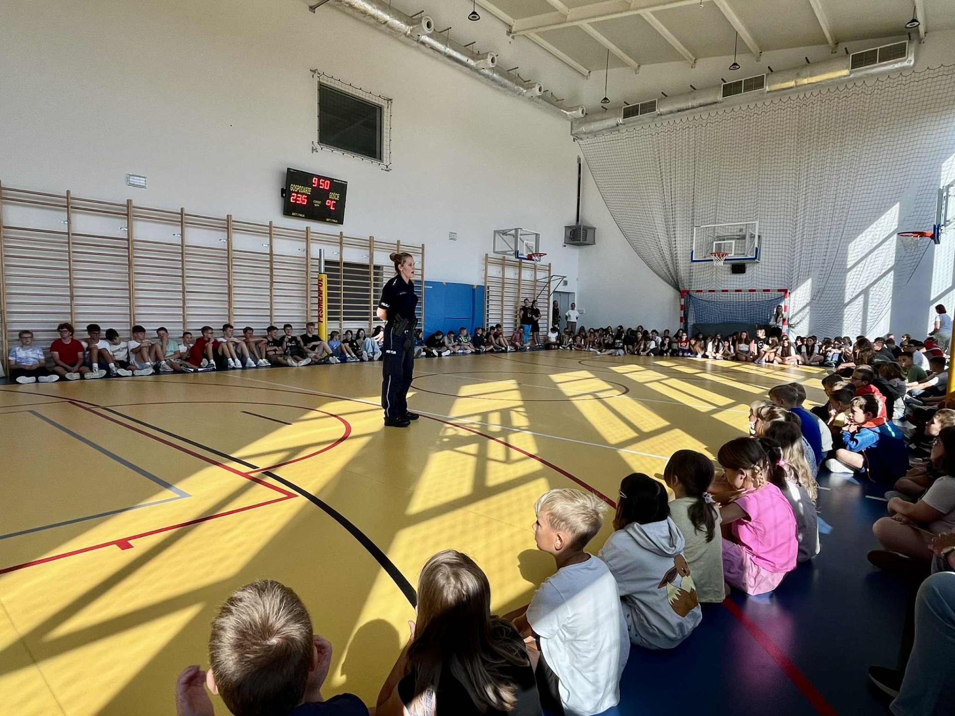 Dziś naszą szkołę odwiedzili funkcjonariusze z Komendy Powiatowej Policji w Grójcu, którzy w ramach ogólnopolskiej akcji „Bezpieczny Powrót do Szkoły” przeprowadzili spotkania profilaktyczne z uczniami oddziału przedszkolnego, zerówki oraz klas I–VIII