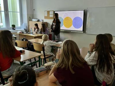 Wolontariuszki z klasy 6a przygotowały samodzielnie prezentację oraz ciekawą grę