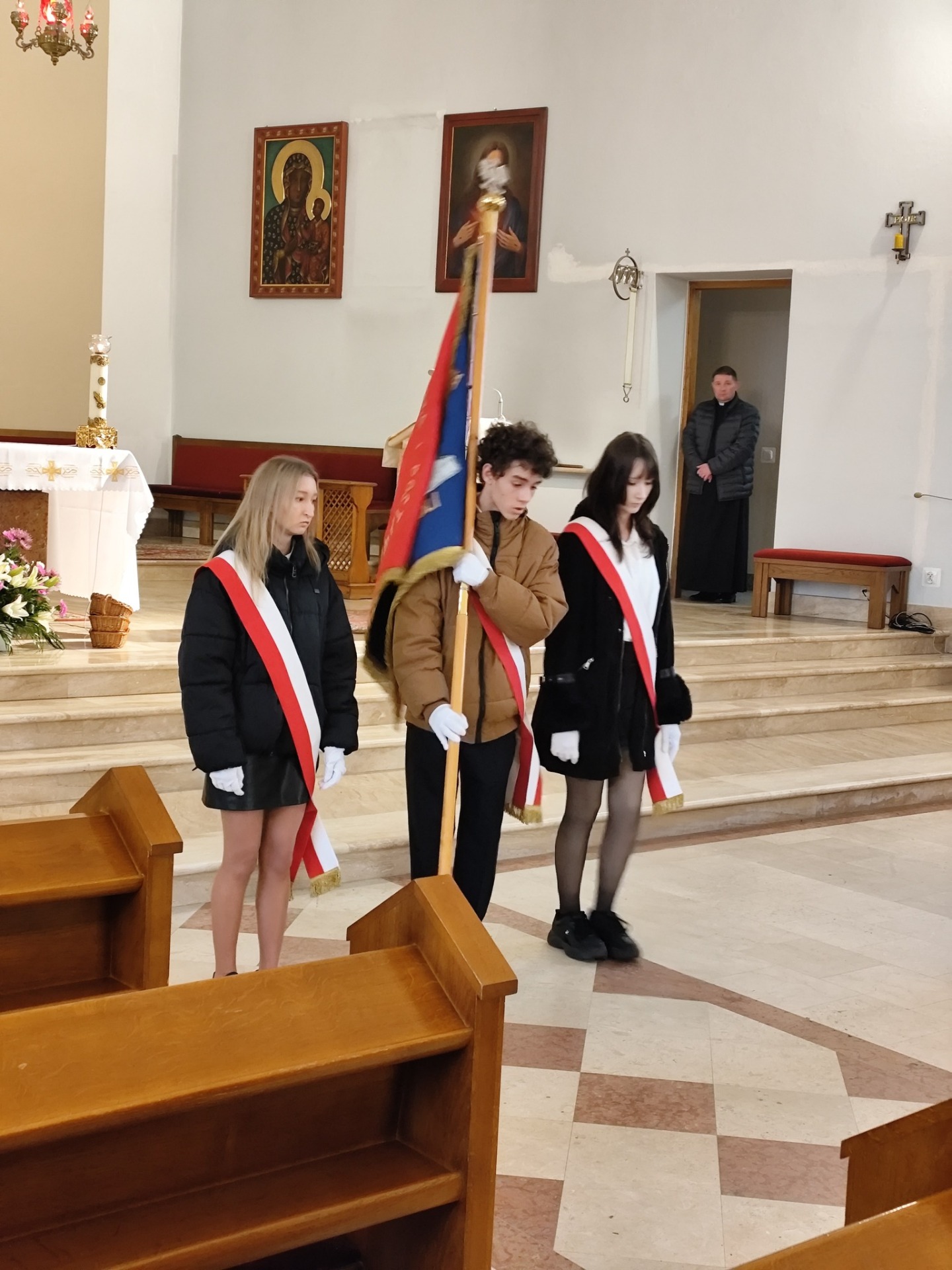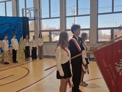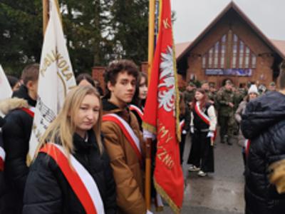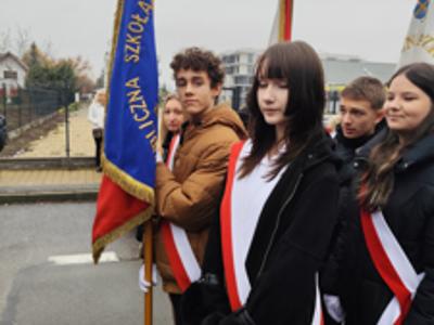 Dziś, w dniu 11 listopada, dyrektor szkoły Beata Werpachowska wraz z pocztem sztandarowym w składzie: