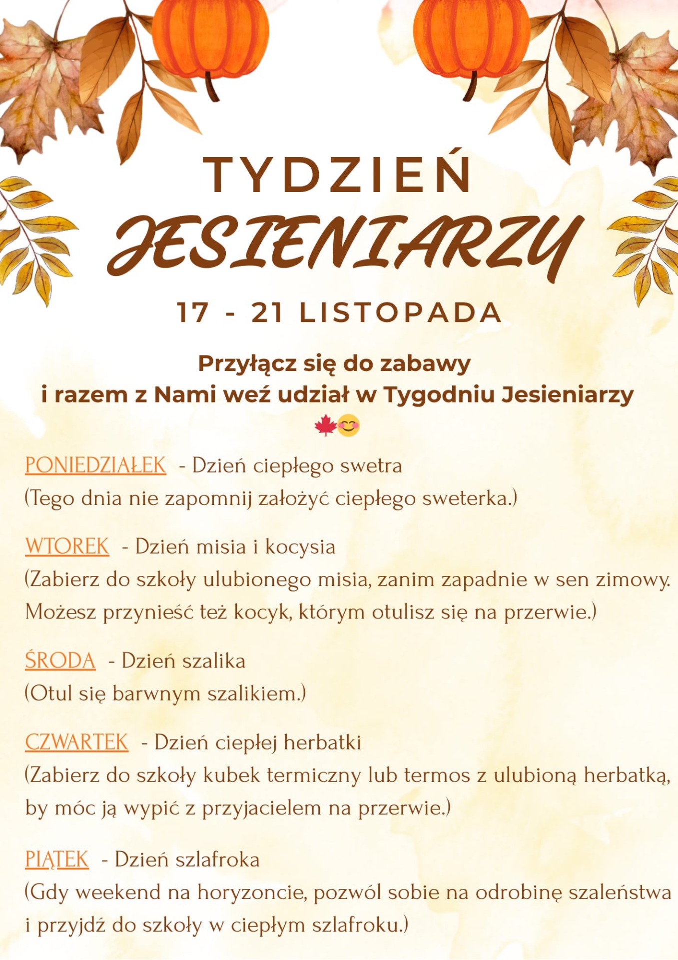 Zapraszamy do udziału w zabawie "Tydzień jesieniarzy"