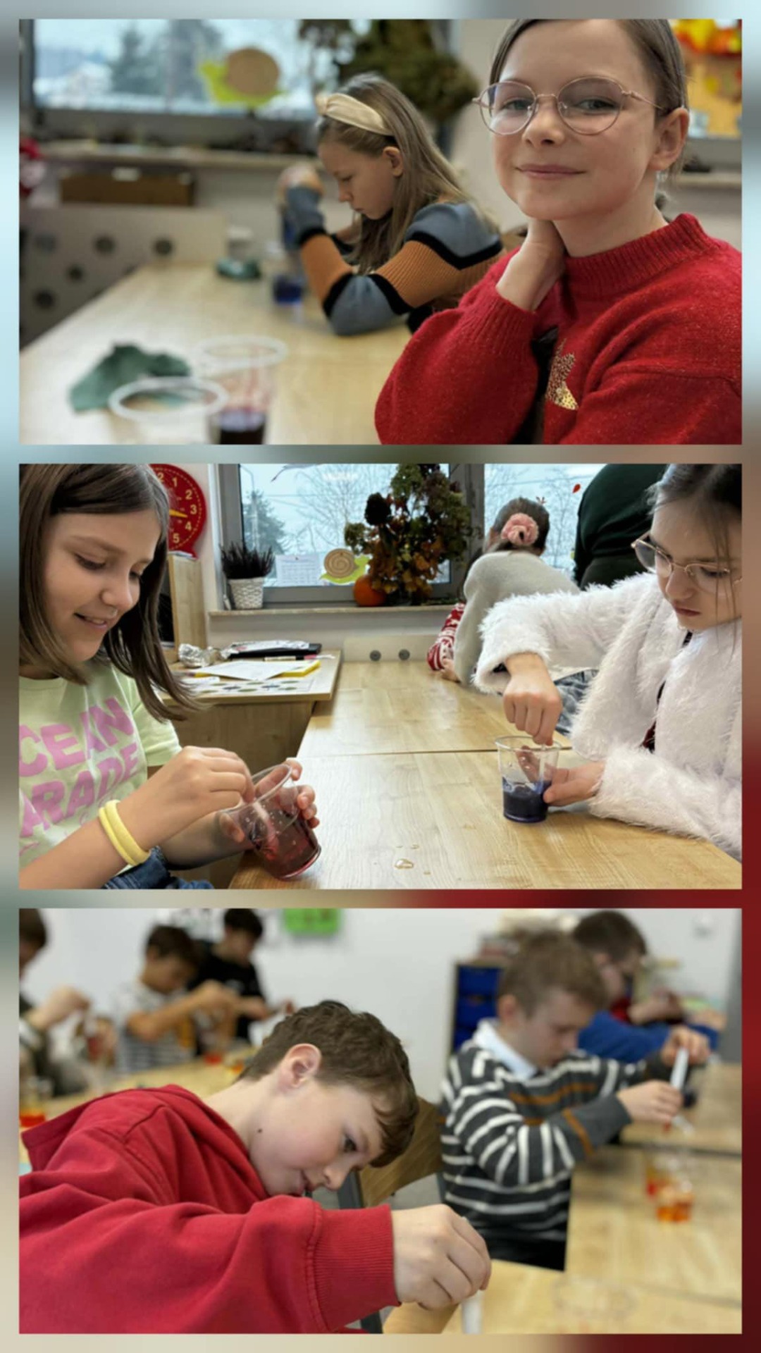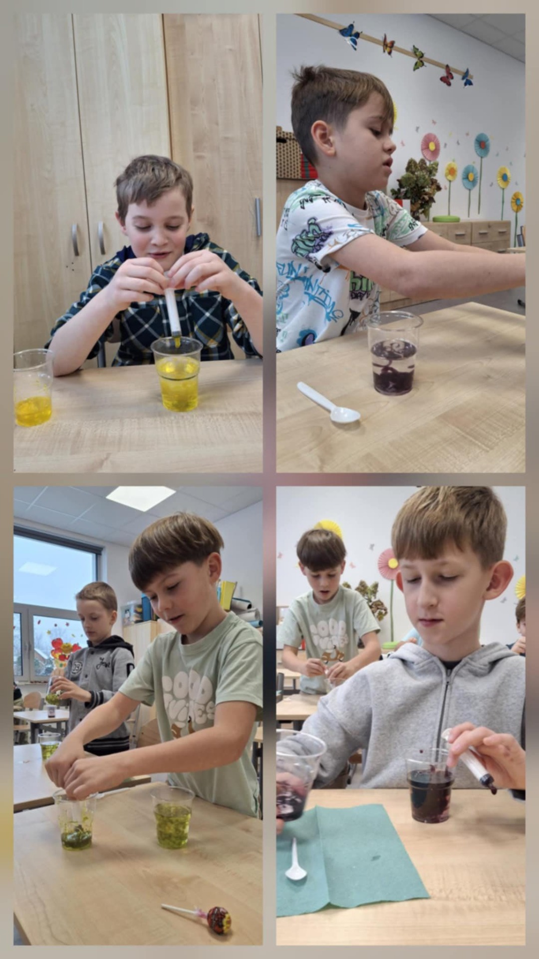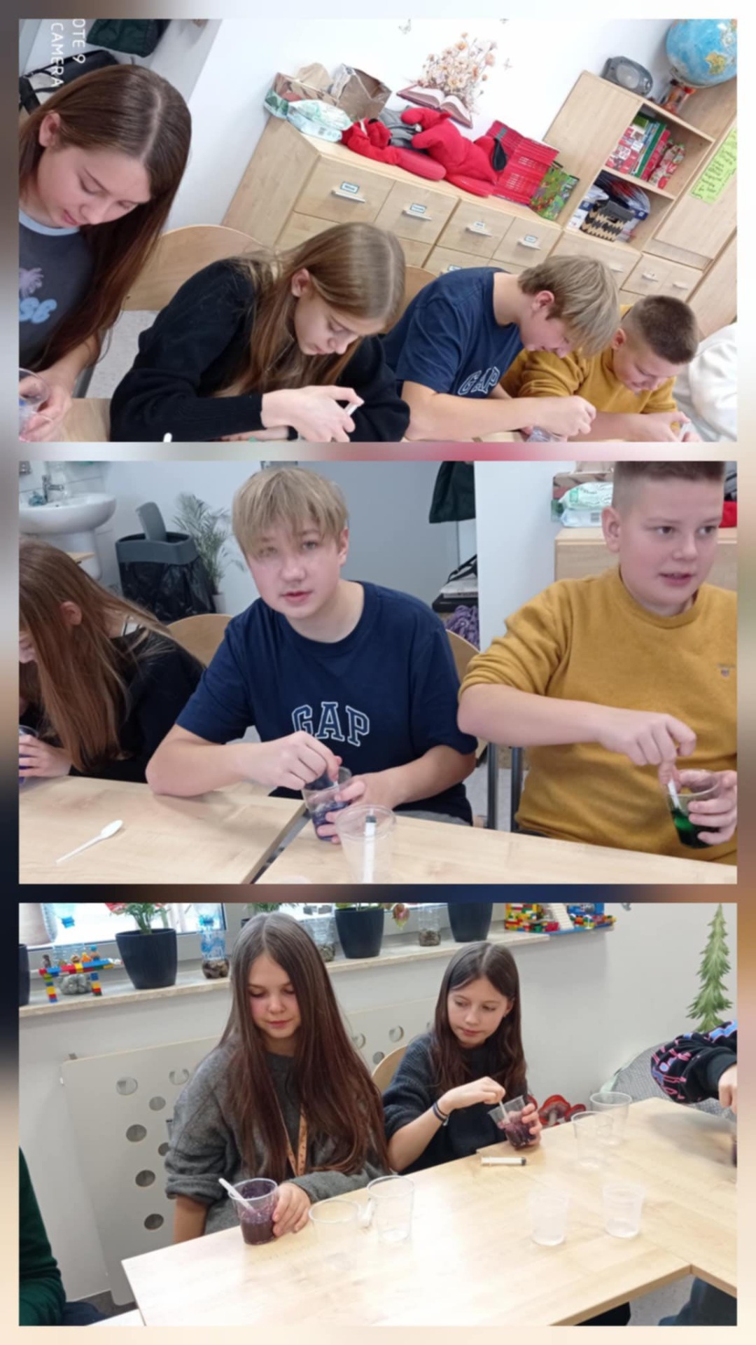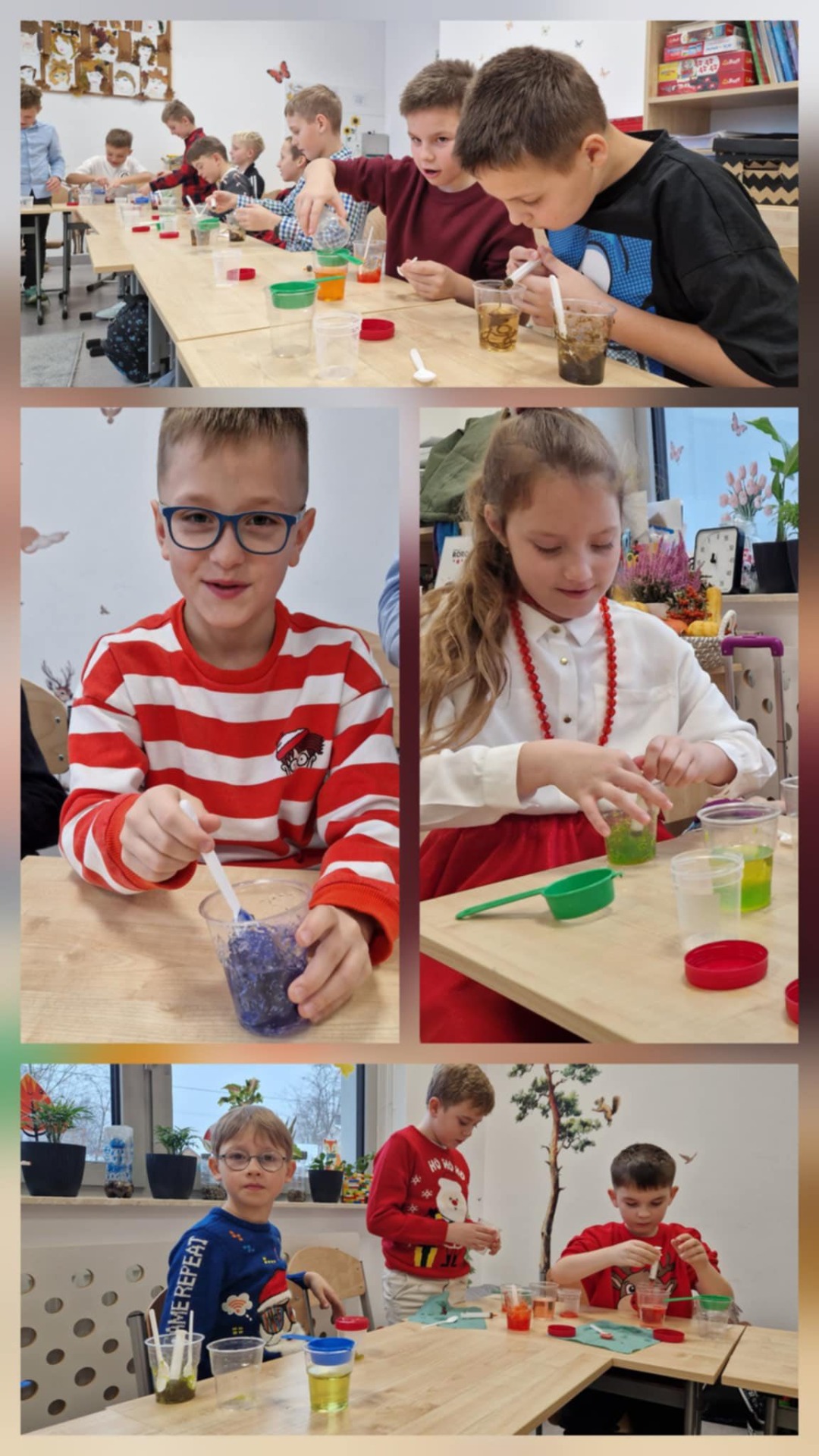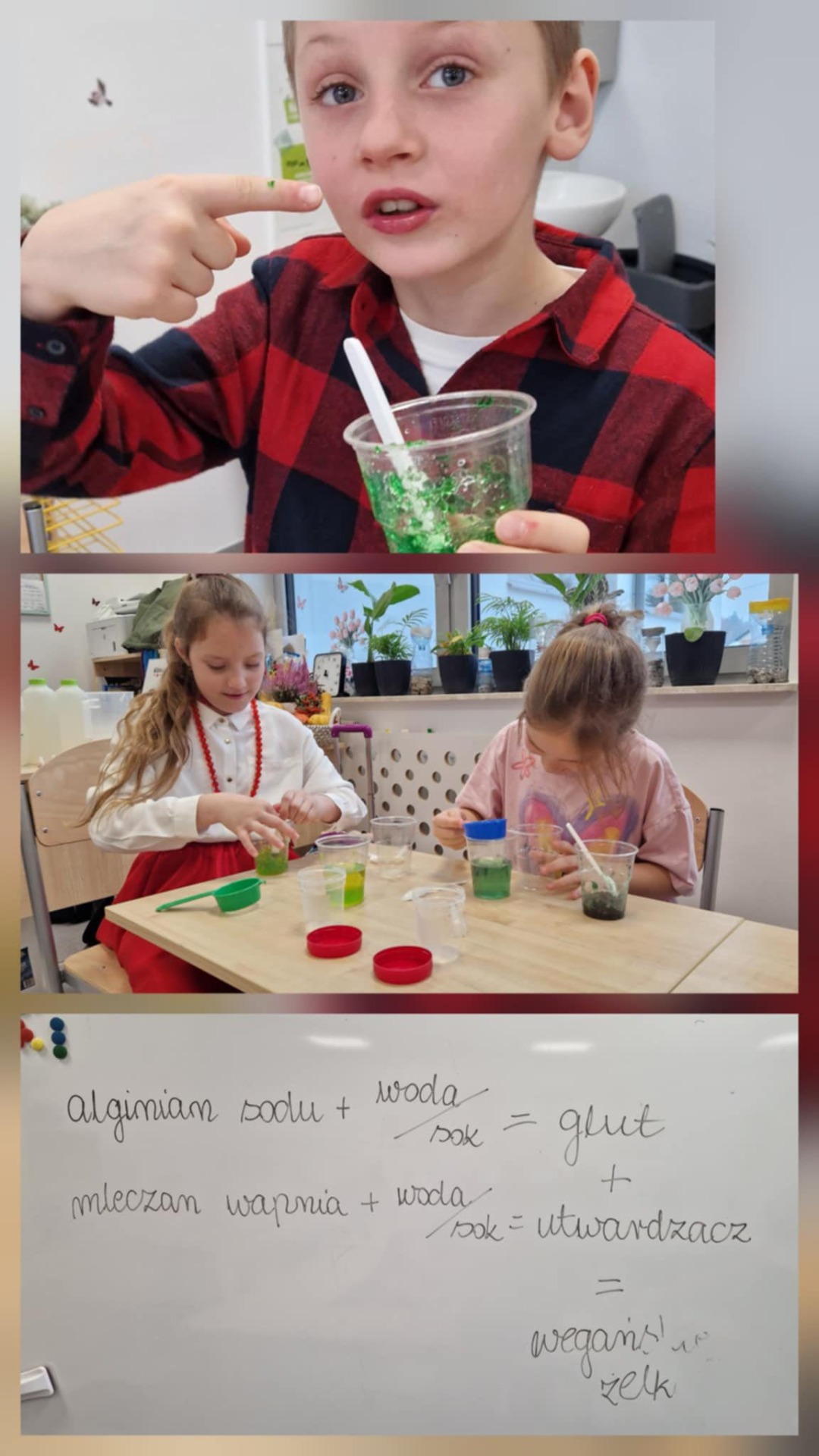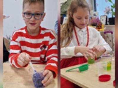 Podczas zajęć uczniowie odmierzali, mieszali, przelewali i dodawali barwniki, tworząc własne, kolorowe kuleczki „kawioru”. Było twórczo, efektownie i bardzo, bardzo eksperymentalnie!