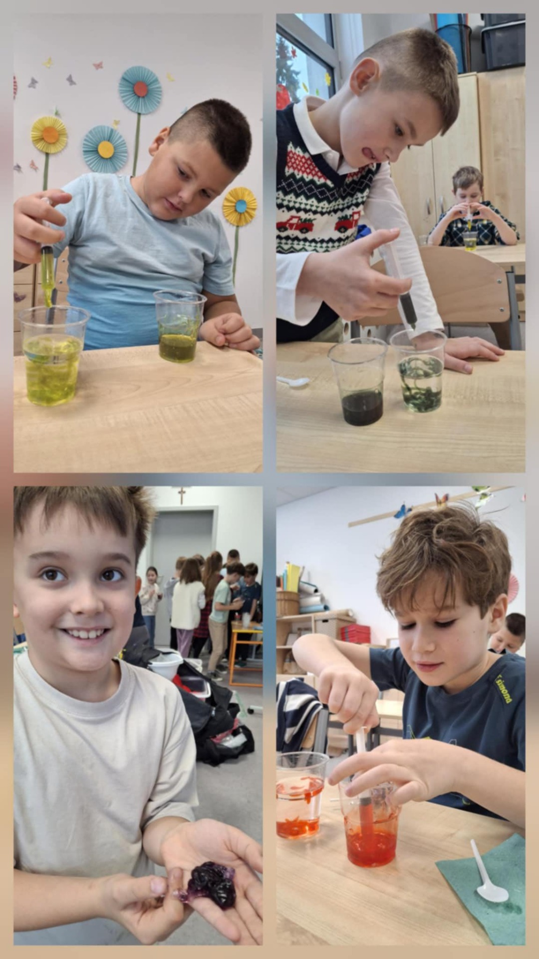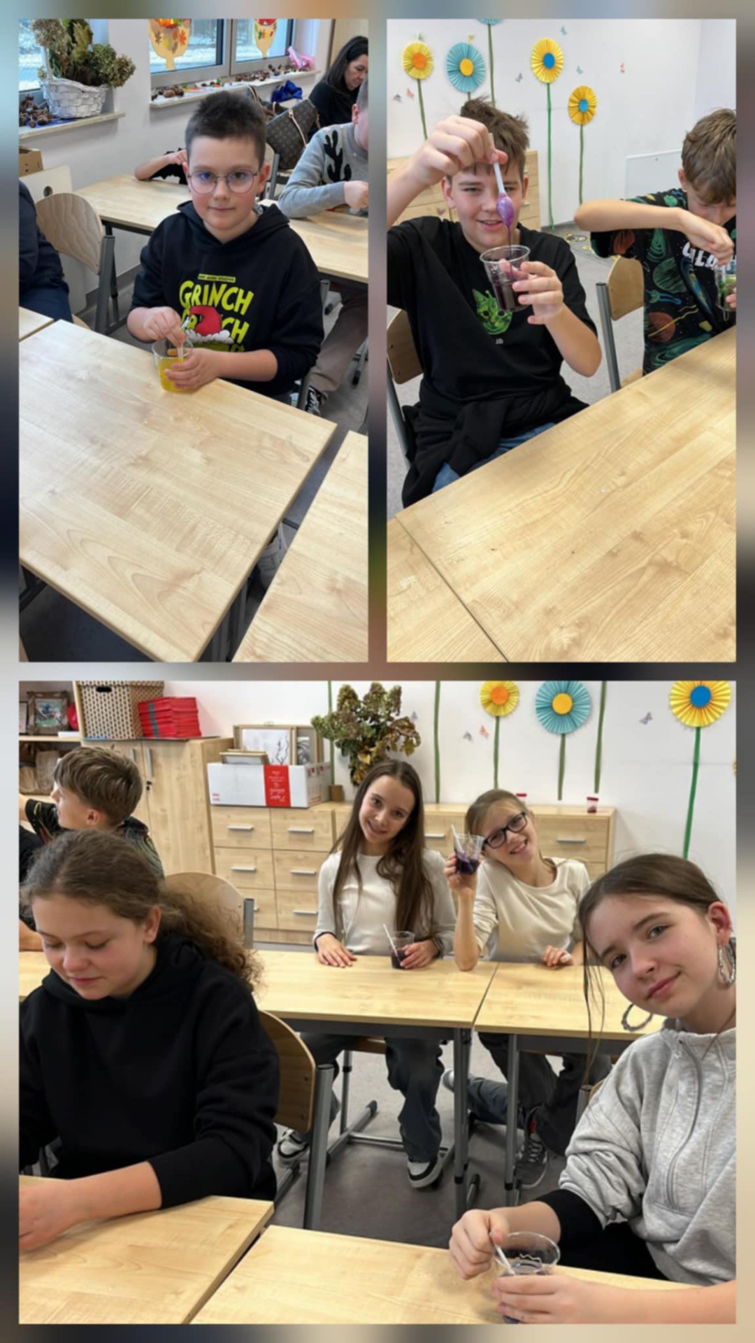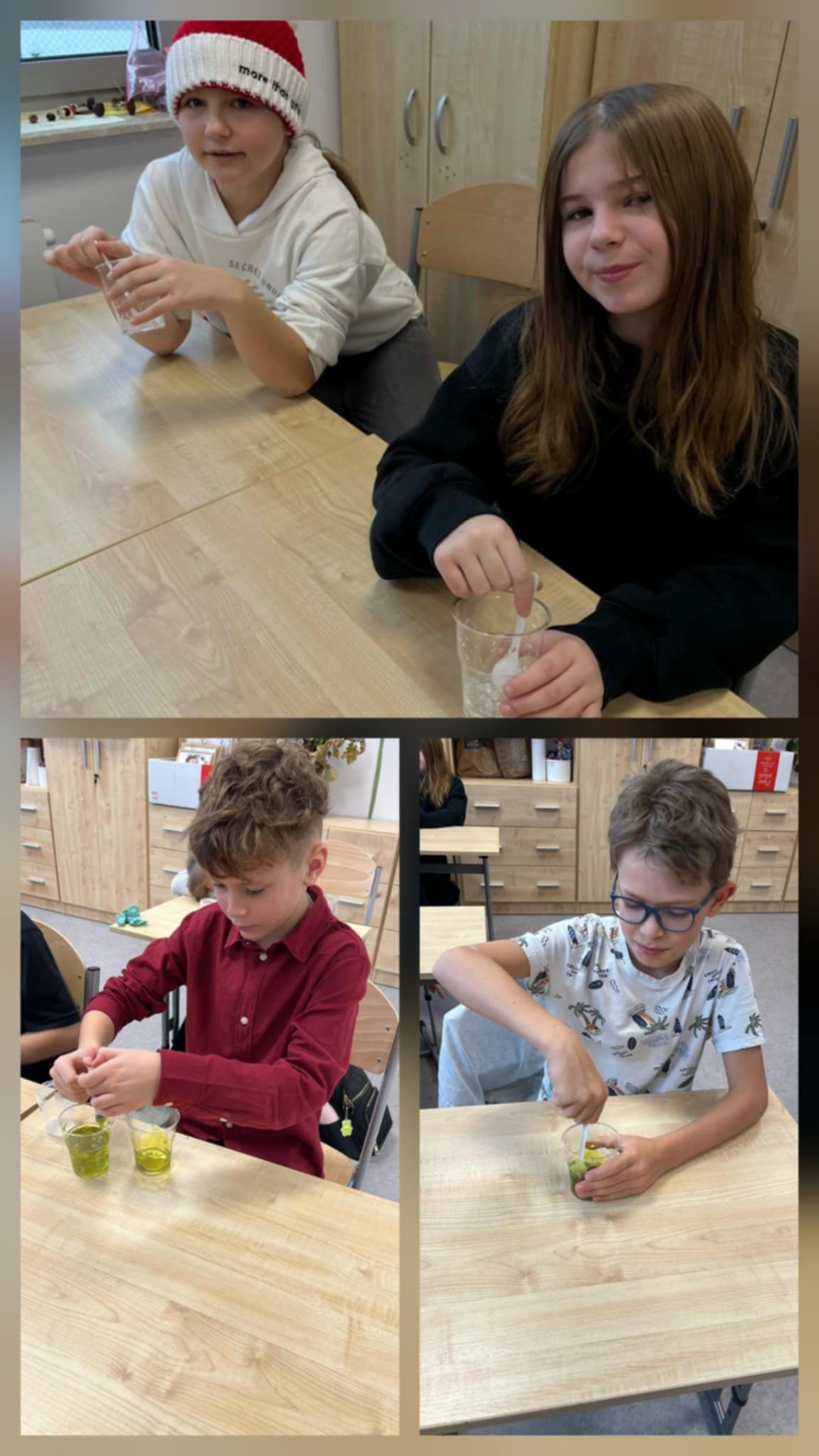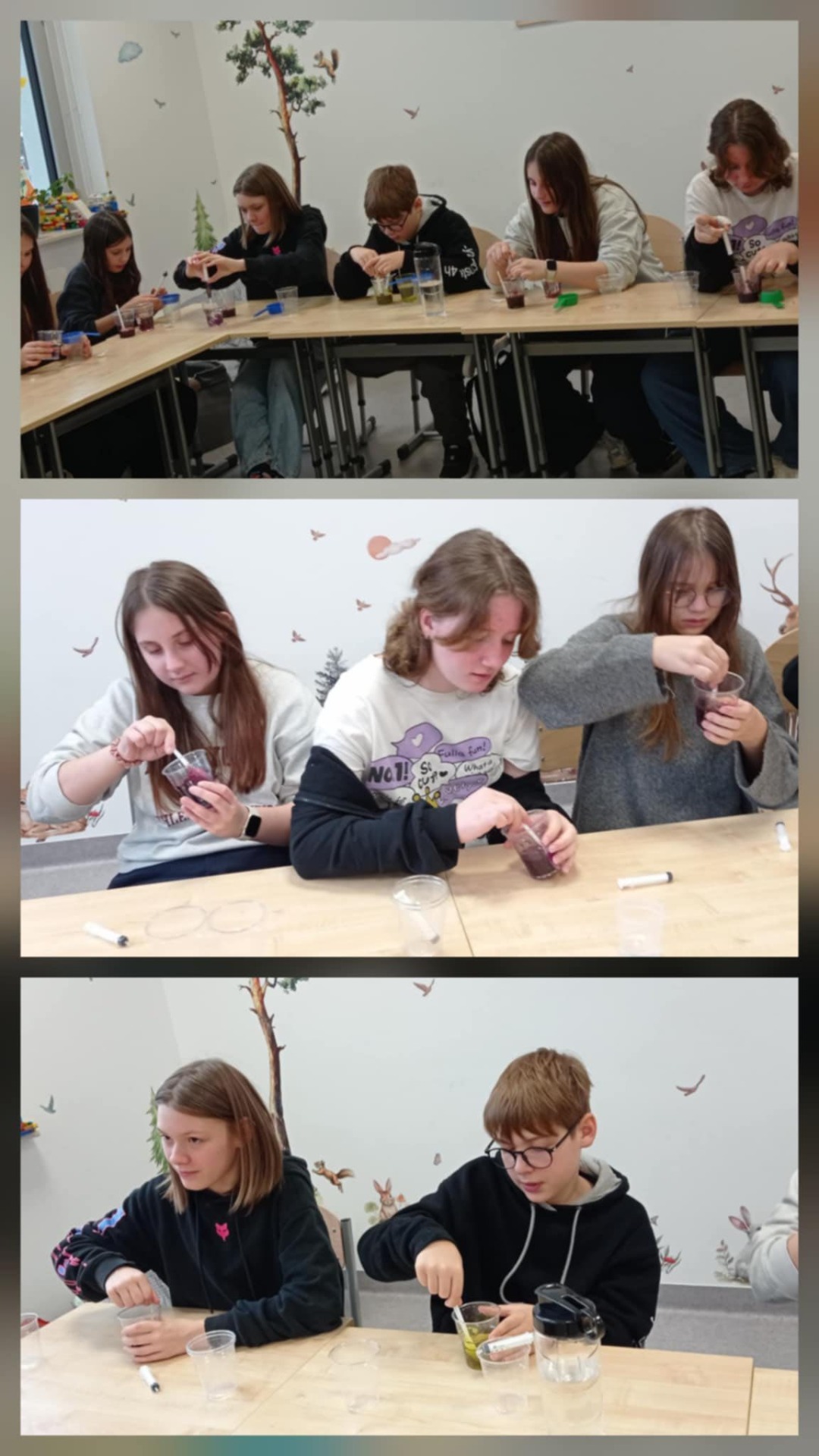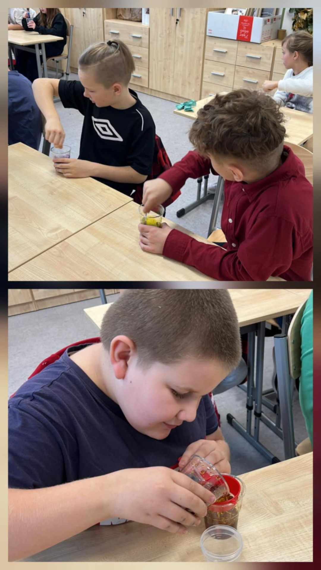 Podczas zajęć uczniowie odmierzali, mieszali, przelewali i dodawali barwniki, tworząc własne, kolorowe kuleczki „kawioru”. Było twórczo, efektownie i bardzo, bardzo eksperymentalnie!