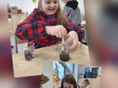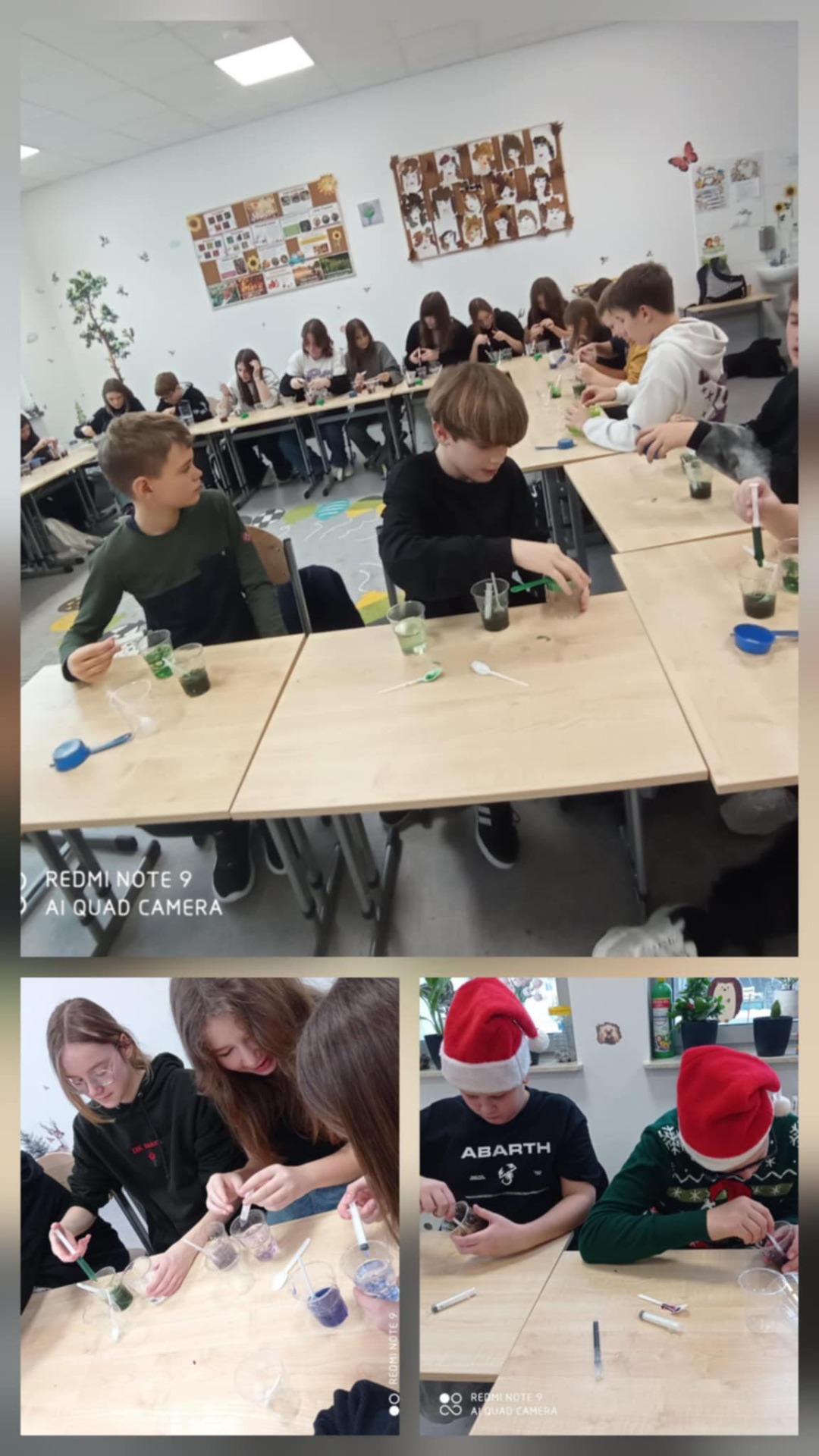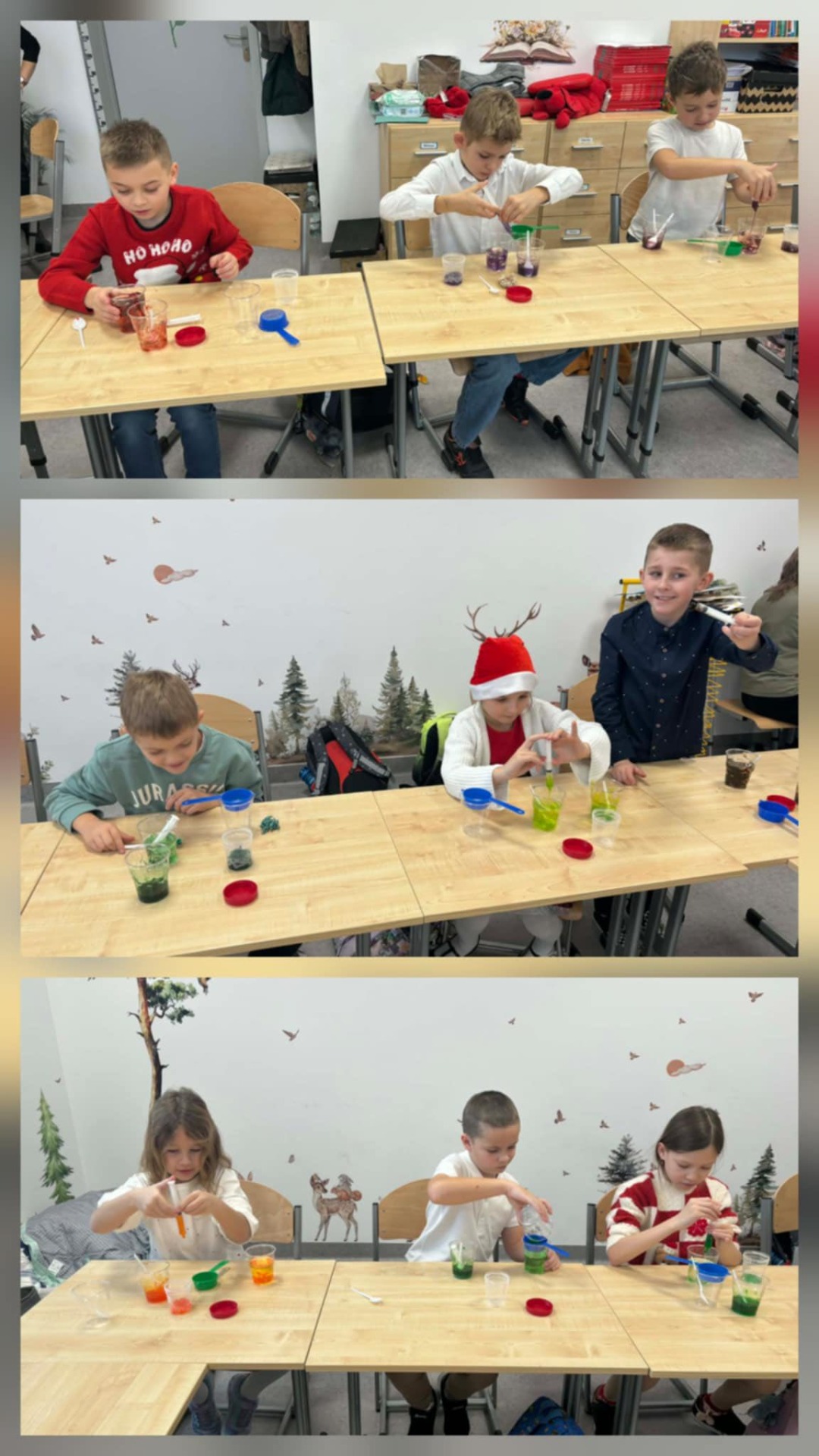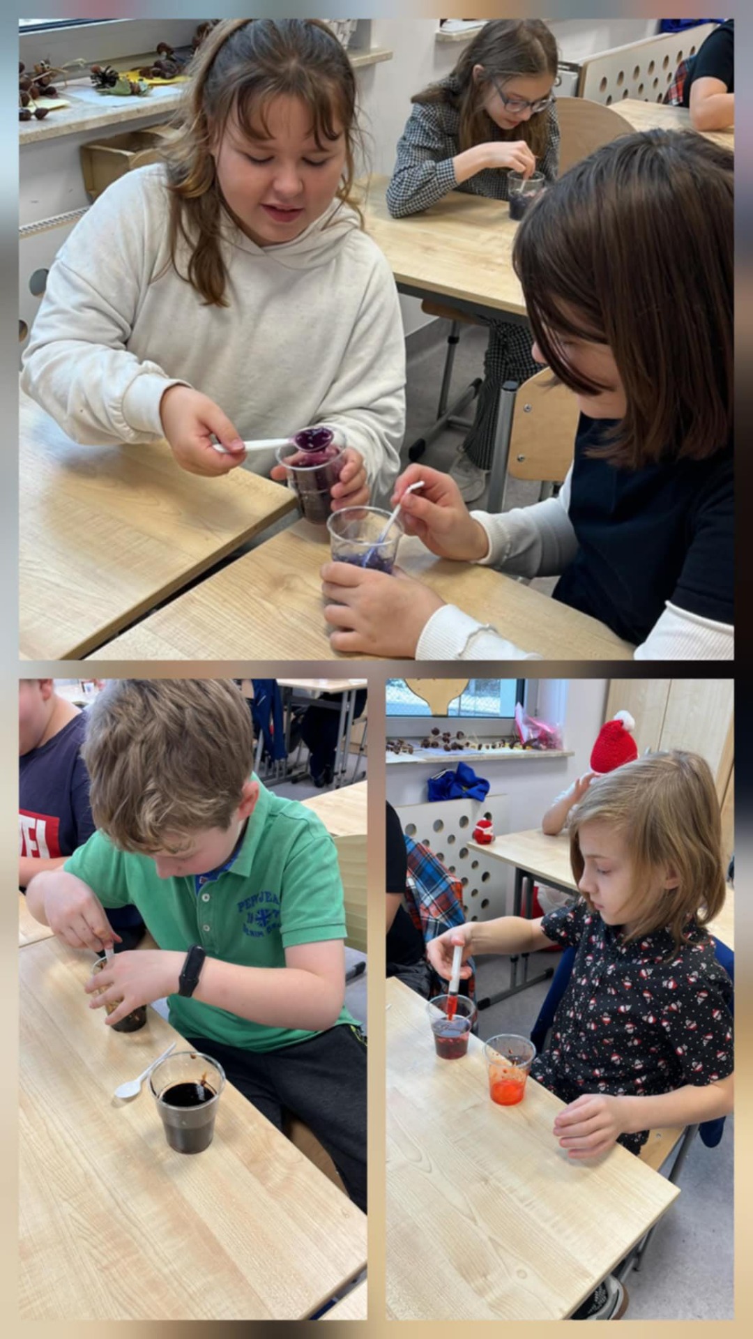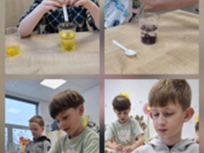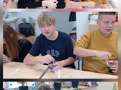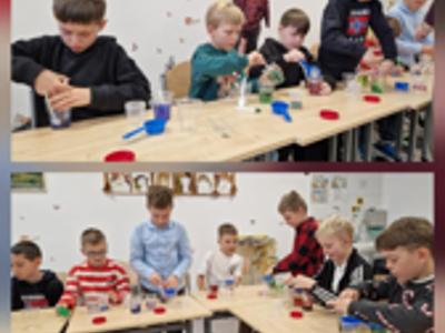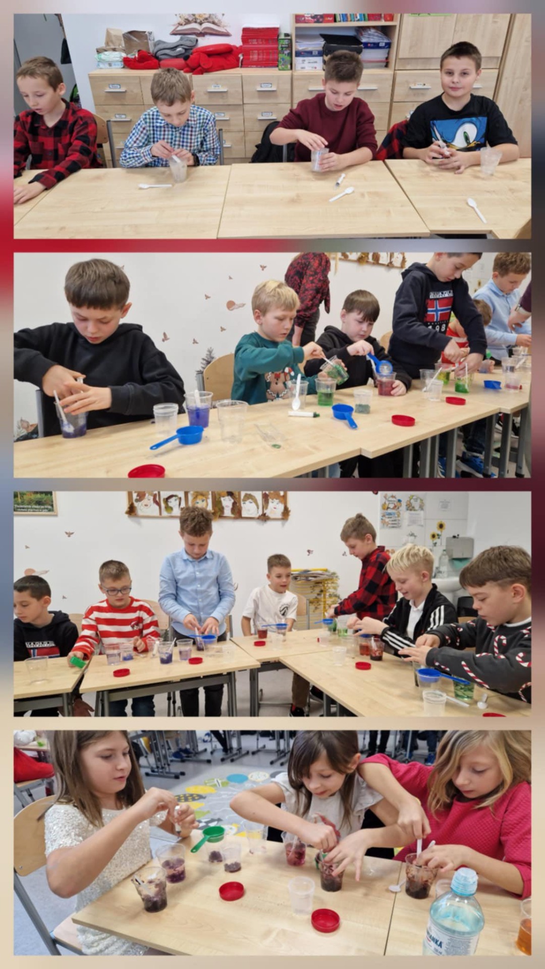 Podczas zajęć uczniowie odmierzali, mieszali, przelewali i dodawali barwniki, tworząc własne, kolorowe kuleczki „kawioru”. Było twórczo, efektownie i bardzo, bardzo eksperymentalnie!