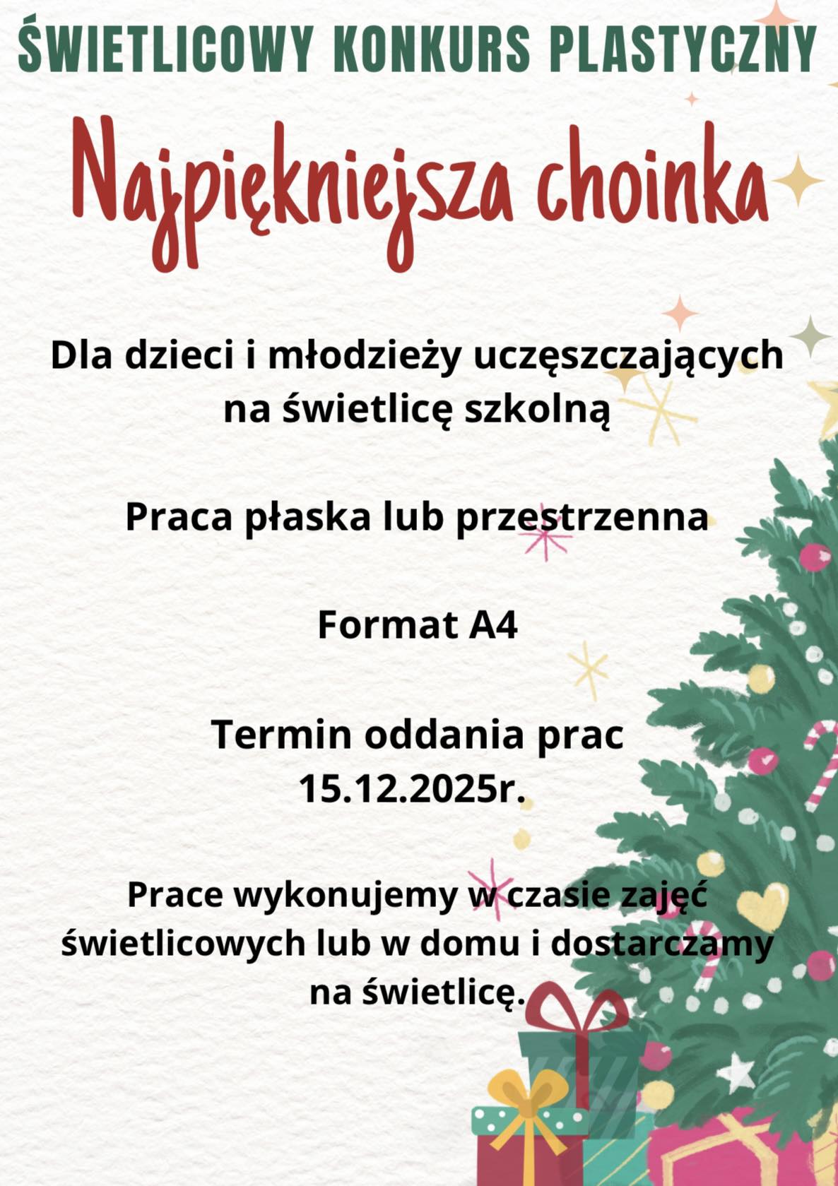 Konkurs plastyczny "Najpiękniejsza kartka bożonarodzeniowa"Zapraszamy do udziału w świątecznym konkursie plastycznym pt. „Najpiękniejsza kartka bożonarodzeniowa”.Praca... -