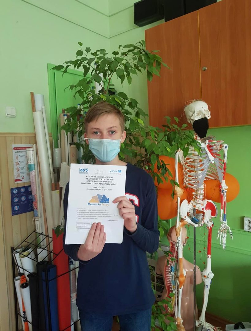 Miło nam poinformować, że Miłosz Świderski, uczeń klasy VIII B, zakwalifikował się do etapu rejonowego Mazowieckiego Konkursu Geograficznego „Mazowieckie Talenty”.