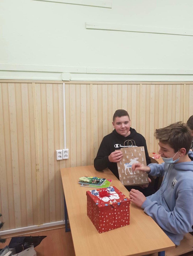 Zgodnie ze zwyczajem klasa VIII A postanowiła obdarować się prezentami w już świątecznie udekorowanej sali. Gdy wszystkie prezenty trafiły do rąk adresatów, nastąpiła ich prezentacja. Uśmiechy na naszych twarzach to dowód na to, że dzień ten był bardzo udany!