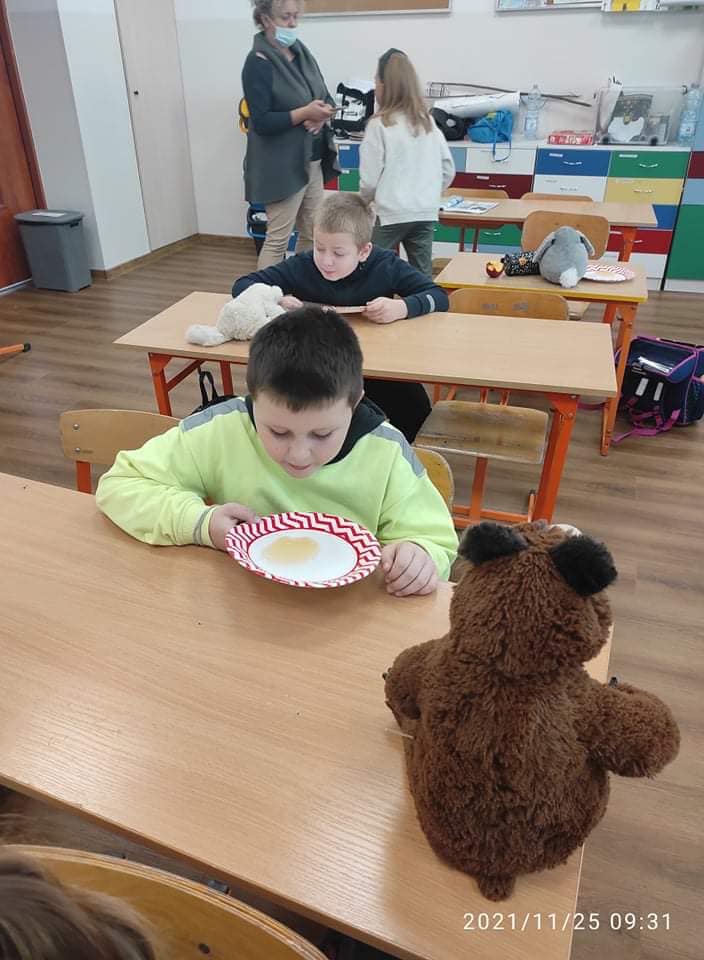 . Nie zabrakło próbowania miodu, prezentowania swoich pluszaków , wykonania pracy plastycznej w postaci Misia.