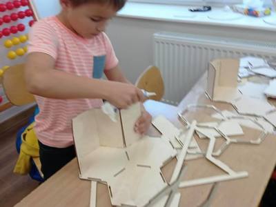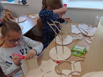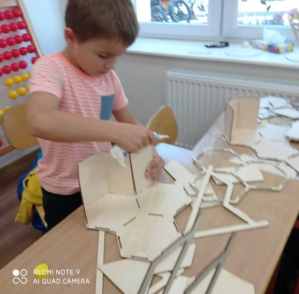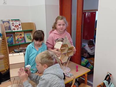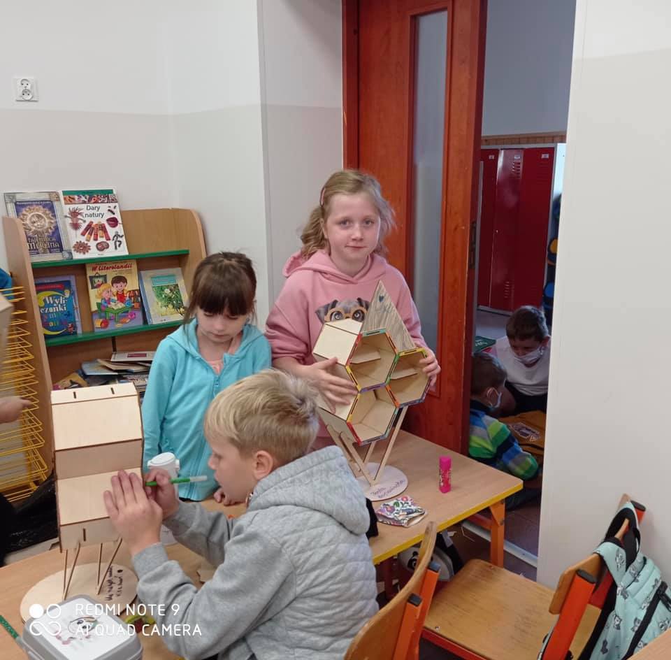 Dzieci z wielkim zainteresowaniem słuchały opowieści o życiu owadów oraz z ogromnym zaangażowaniem wykonywały mieszkania dla małych zwierzątek. Te sztuczne obiekty z materiałów naturalnych zabrały do swoich domów, aby zapewnić różnym gatunkom owadów schronienie i możliwość budowy gniazd. Bardzo dziękujemy za ciekawe zajęcia.