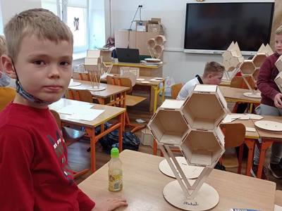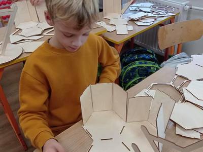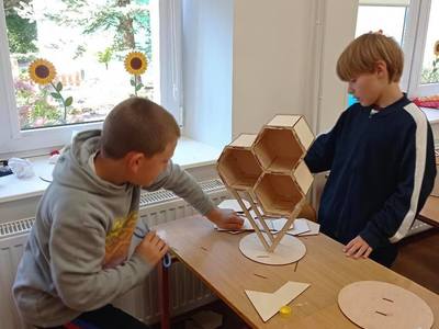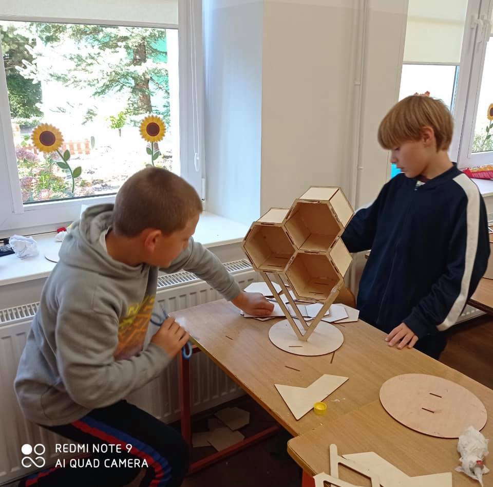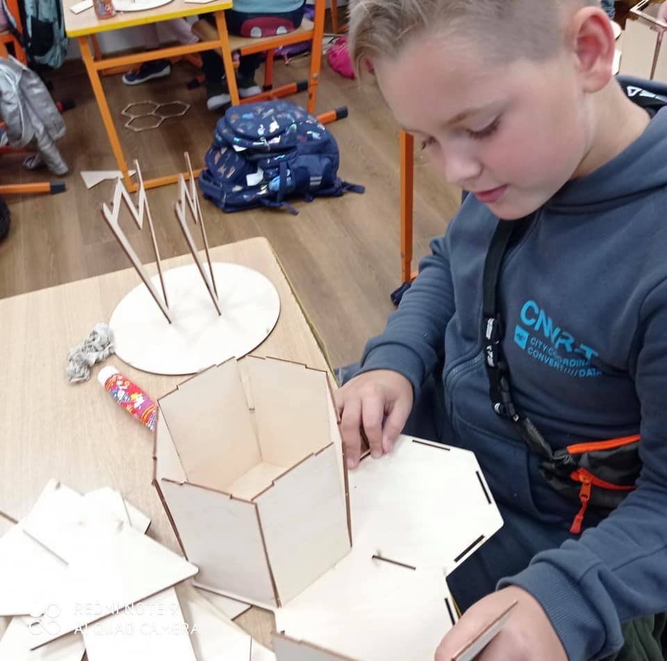 27 września uczniowie klasy drugiej wzięli udział w warsztatach budowy domków dla owadów, które poprowadził edukator ze Stowarzyszenia Robisz to!.