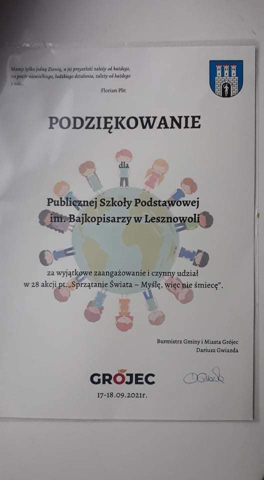 Opiekunowie akcji dziękują wszystkim za zaangażowanie i zapraszają do udziału w kolejnych akcjach ekologicznych