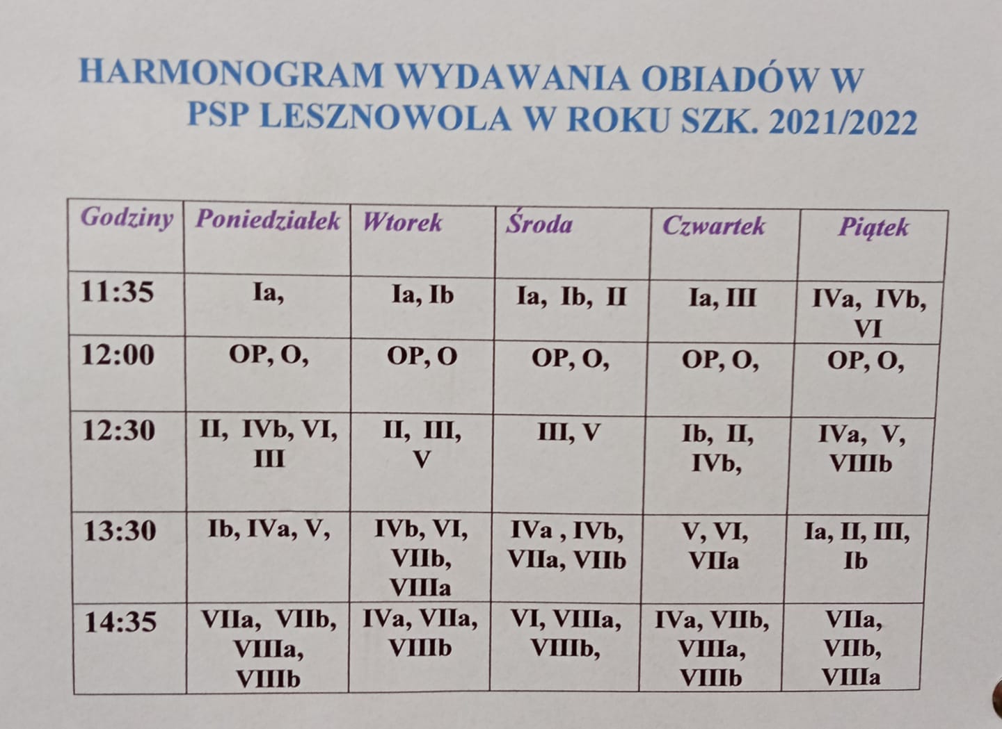 Harmonogram obiadów