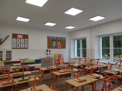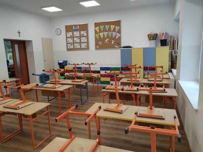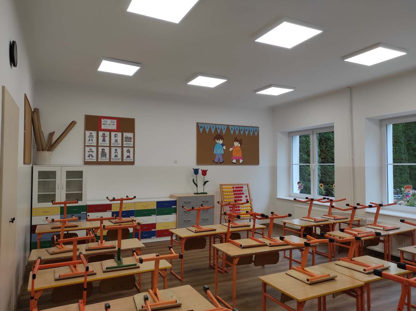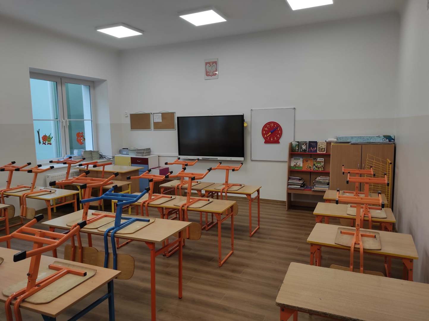 Dzięki Burmistrzowi Gminy i Miasta Grójec Panu Dariuszowi Gwieździe i Pani Naczelnik Monice Kozłowskiej, którzy zabezpieczyli fundusze na remont. Mamy wyremontowane 3 klasy na dolnym korytarzu. Wydzieliliśmy pomieszczenie na bibliotekę szkolną, odzyskaliśmy jedną klasą aby było łatwiej.