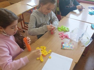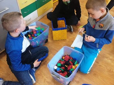 Czytanie bajek terapeutycznych, wykonanie znaczków pocztowych, plakatów, konstruowanie słynnych budowli z klocków- to tylko niektóre z realizowanych zadań.