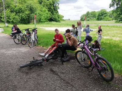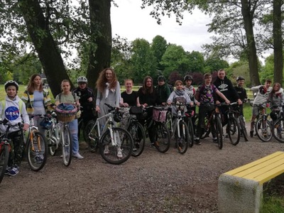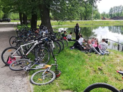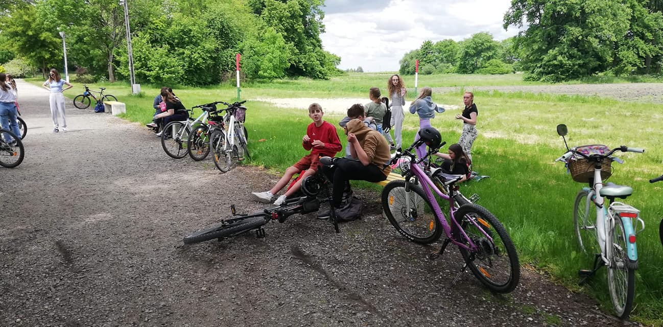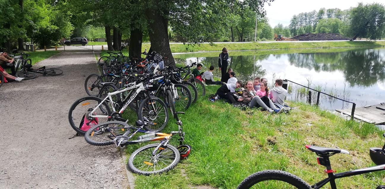 Z okazji Dnia Dziecka, uczniowie klas VII i VIII wraz z wychowawcami i opiekunami udali się na wycieczkę rowerową nad stawy do Jasieńca. Po pokonaniu ponad 30 km i powrocie do szkoły, wszyscy uczestnicy wycieczki zjedli kiełbaskę z ogniska sfinansowaną przez Radę Rodziców.