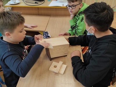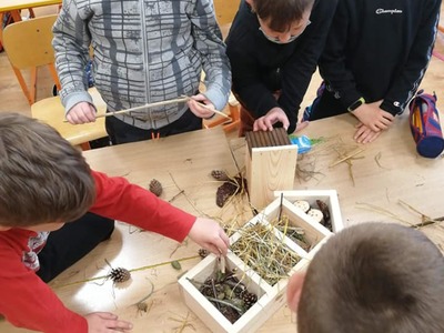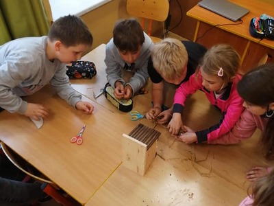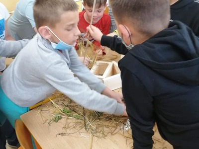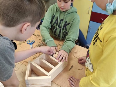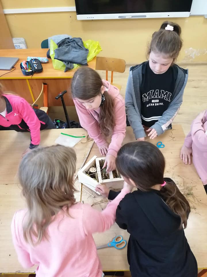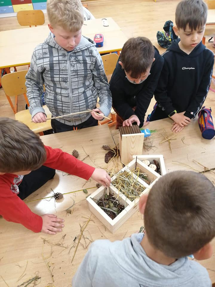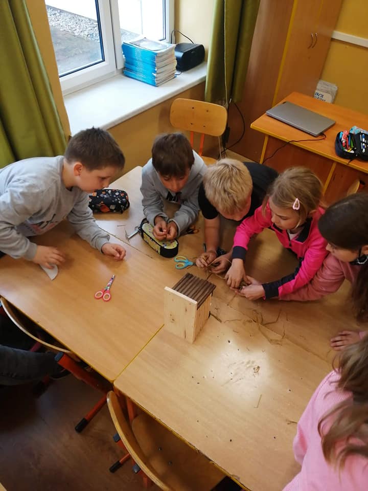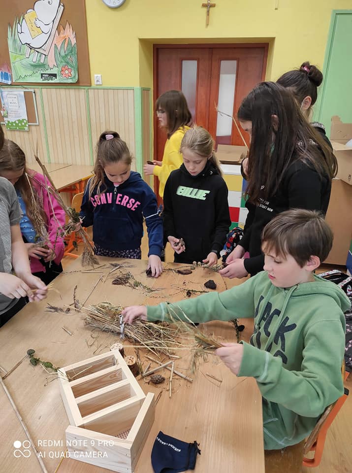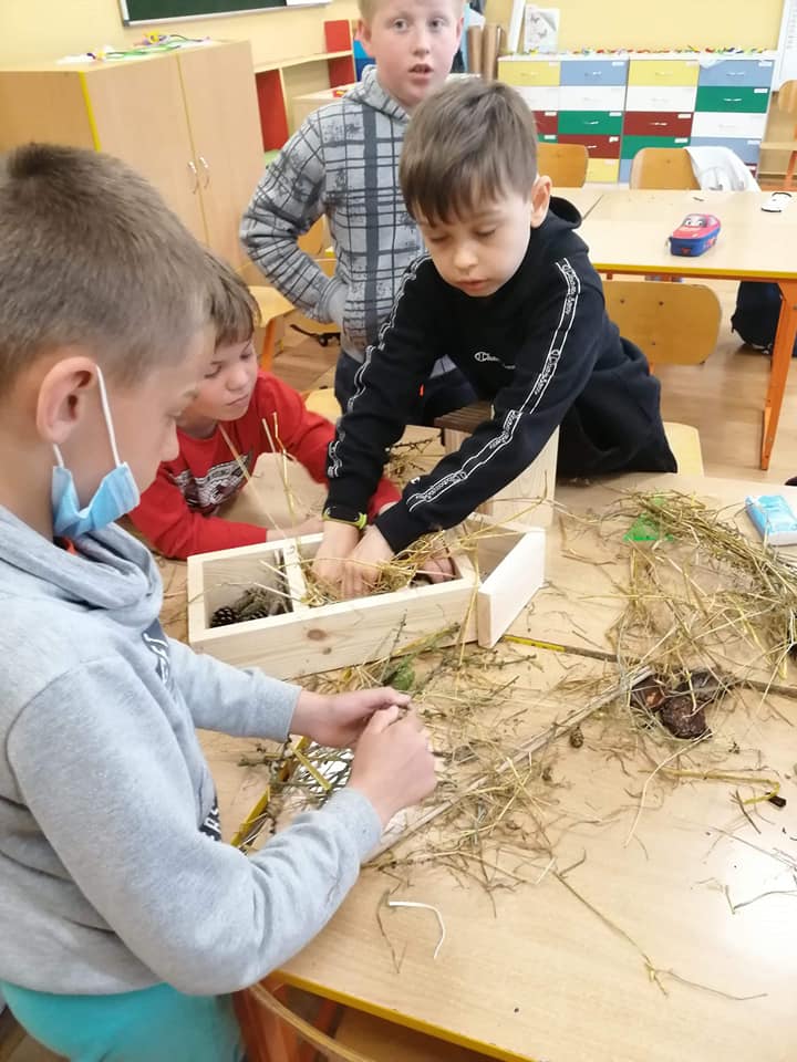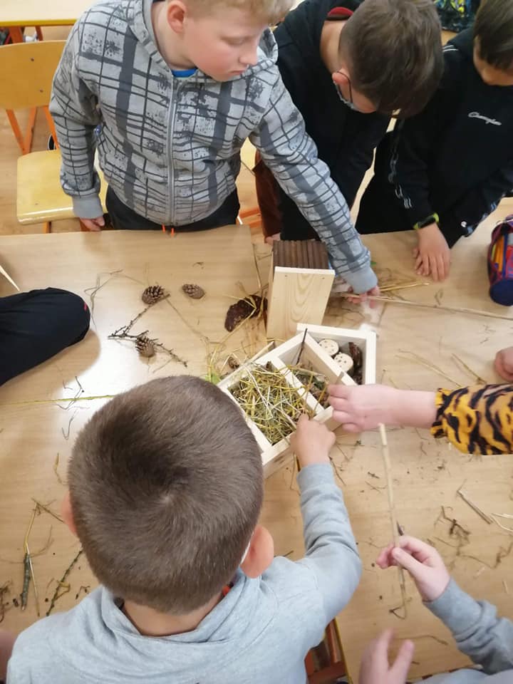 20 maja obchodzimy Światowy Dzień Pszczół. Z tej okazji uczniowie klas IIa i IIIa obejrzeli film edukacyjny o owadach, wspólnie wykonali domki dla owadów oraz budki lęgowe dla ptaków. Będą one zamontowane na drzewach wokół szkoły. Każdy z uczniów posmakował miodu.